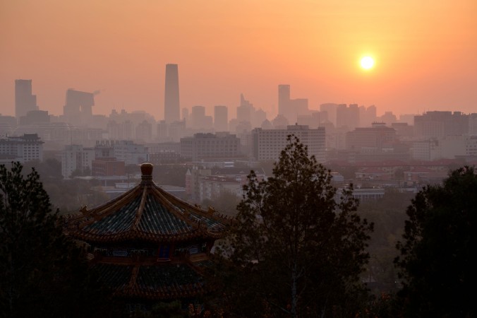The sun rises above the Beijing skyline early on Nov. 6, 2012. The Chinese Communist Party will collapse in three stages in the next three years and its reign will come to an end by 2016, according to the Hong Kong magazine Frontline. (Ed Jones/AFP/Getty Images)