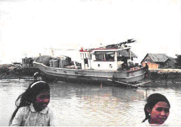 Chiếc ghe đậu ven sông có tên là Kiên Giang