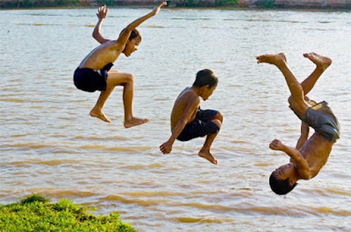 Đang đứng ngắm cảnh Sáu quay lại khi nghe có tiếng cười nói sau lưng. Nó thấy hai đứa con nít học cùng trường vừa đi vừa nhảy cò cò. Thằng đi trước ở trần đưa ra cái bụng bự như mắc cam tích. Nó mặc cái quần tà lỏn mà sợi dây thun cũ giản đi nên tuột sâu xuống khiến cho nó chốc chốc lại phải kéo quần lên. Thằng đi bên cạnh ốm như cò ma, tóc tai chờm bờm. Nó mặc cái áo thun chắc lúc mới mua màu trắng nhưng bây giờ lại biến thành màu gì kỳ cục không phải nâu, không phải vàng. Nó cầm trong tay cái ná thung làm bằng nhánh cây. Thứ ná thung này dễ làm lắm. Cứ đi kiếm một nhánh cây có chữ Y xong cột dây thun và miếng da bò là có thể bắn được ngay. Hai đứa con nít hơi ngần ngừ khi thấy Sáu đứng nhìn tụi nó lom lom.