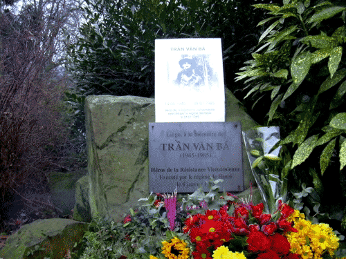 Chàng đã chết thêm nhiều lần ở quan tài xi măng khu FG Chí Hoa. Cho đến một đêm, cánh cửa cachot mở, nhiều ngọn đèn pin soi sáng quan tài. Người ta dựng chàng dậy, bắt chàng đứng nghiêm nghe đọc lệnh hành quyết. Rồi người ta bảo chàng há miệng ra, tống trái chanh và nhét đầy miệng chàng. Người ta dán miếng băng keo lớn kín miệng chàng rồi bịt chặt mắt chàng, trói tay chàng lại. Người ta tháo xích chân chàng ra, xách hai bên nách chàng, dẫn chàng bước xuống bốn tầng lầu và dìu chàng đi, đi mãi…Chân chàng dẵm lên đá sỏi, đá răm rồi đạp lên cỏ ngậm sương. Chàng biết mình đã tới bãi hành quyết. Người ta cởi giây trói cổ tay chàng và buộc hai cánh tay chàng vào cái cột. Lưng chàng sát khít cột gỗ. Khi chàng thấy những bước chân của đồ tể bước ra khỏi chỗ mình, chàng dang hai chân ra. Chúa Giê-Xu bị quân dữ căng tay đóng đinh trên thập giá, hai chân chụm lại, đầu hơi nghiên xuống. Chàng bị cộng sản trói ghì tay, chân dang ra và đầu ngẩng lên. Một thánh nhân vì nhân loại, một chiến sĩ vì dân tộc. Hai hình ảnh cùng tuyệt vời, cùng rực rỡ. Một băng đạn nổ ròn rã trong đêm u tịch của quê hương. Trần văn Bá rũ đầu xuống. Chàng đã thỏa mãn. Máu của chàng, máu của người tuổi trẻ, máu của người quốc gia chân chính đã đổ xuống thấm đất quê hương. Hoa hạnh phúc dân tộc sẽ nở từ chỗ đó.